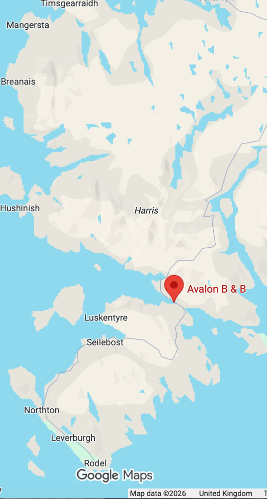 Less than an hour’s drive from the Calanish Stones, to the North and half an hour to St Clement’s Church at Rodel, in between are the majestic hills of North Harris and the golden sandy beaches of Luskentyre, Seilebost and Horgabost. The house is situated on the family croft, with a southerly aspect over West Loch Tarbert. Some of our rooms have extensive views of the loch. Here, you will find peace and tranquility, in comfortable and friendly surroundings, whilst you view the wildlife from your window.