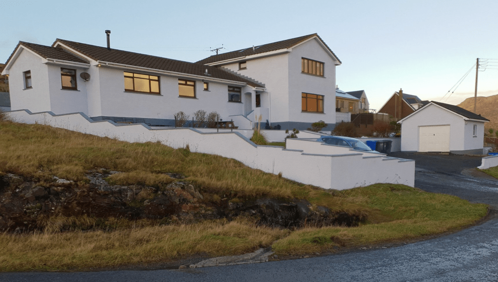 The Heathbank Guest House was originally built as a mission house over 150 years ago. It is located at Northbay in the north of Barra where you can watch the fishing boats arriving across the bay. This is a Licensed guest house with bar, no evening meals. Unmanned at night. Located in a pretty area only 15 minutes drive from Castlebay.