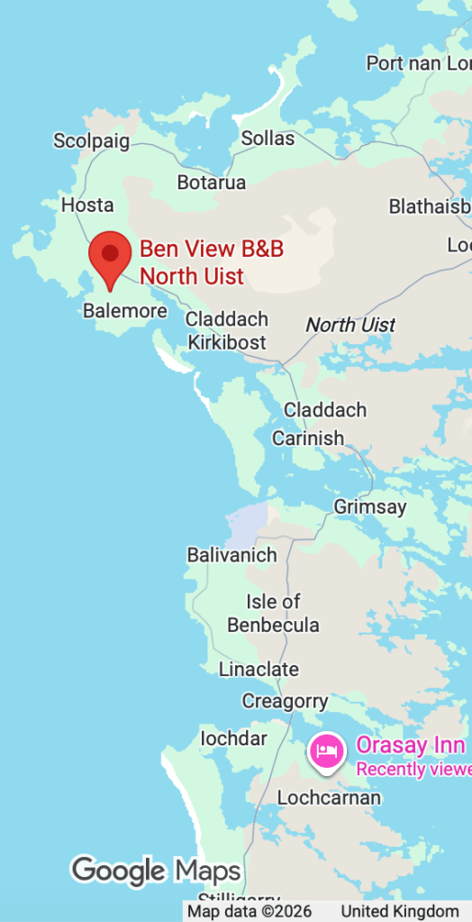 Ben View is a family run B&B located on North Uist in the breathtaking Outer Hebrides. Ben View offers a warm welcome to visitors and tourists alike for an unforgettable experience on this extraordinary island. Situated on the shore of the beautiful Loch Sandary.