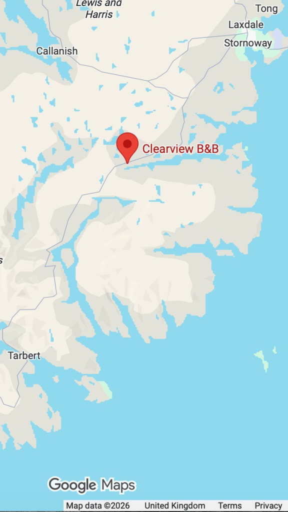 Clearview B&B is located 15 miles from Stornoway and 24 miles from Tarbert, which makes it ideal for exploring the sandy beaches and many places of interest in Lewis and Harris. The local lochs offer fresh water fishing and the surrounding area provides various routes for scenic walks. A family run B&B in a peaceful elevated location enjoying extra ordinary panoramic views of Loch Erisort and the Harris hills. The accommodation provides 1 double en-suite room, 1 twin en-suite room and 1 double room with private bathroom.