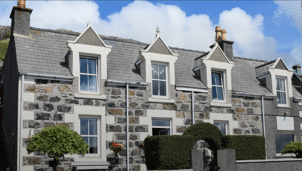 Hamersay House is located in Lochmaddy is a stylish hotel with Brasserie, 9 bedrooms, a comfortable lounge bar, landscaped gardens and a decked outside eating area. Excellent and varied lunchtime and dinner menus