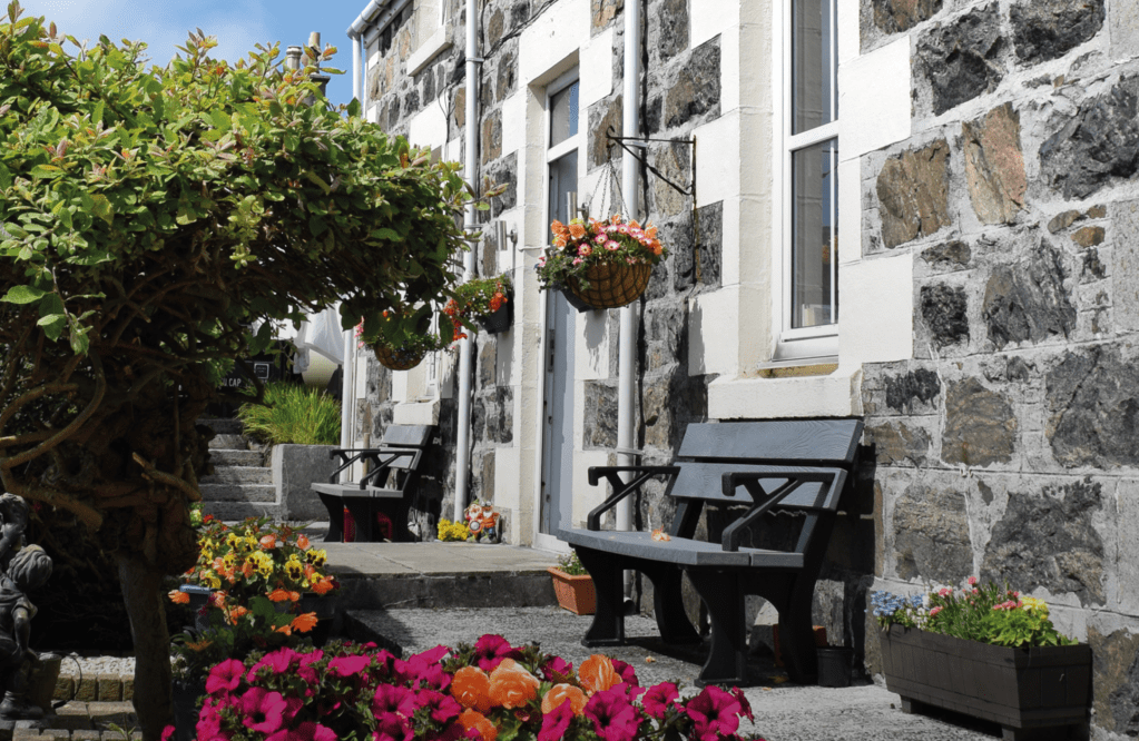The Castlebay Hotel in the small village of Castlebay sits on the hillside overlooking the pier, Kisimul Castle in the bay and the island of Vatarsay and is an ideal base for exploring the Isle of Barra. The hotel has 12 en-suite rooms, some with hill views and some with sea views. You can eat in the Castlebay Restaurant or the Cocktail Bar with varied menus featuring beef fillet, Barra lamb, local shellfish as well as vegetarian dishes. This is a small, friendly hotel run with experienced staff. It’s lovely watching the ferry arrive or depart from the island.