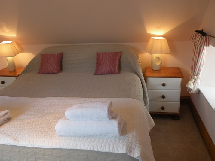Sleeps 4 with two bedrooms; one double bedroom (first floor) and one twin bedded room (ground floor).